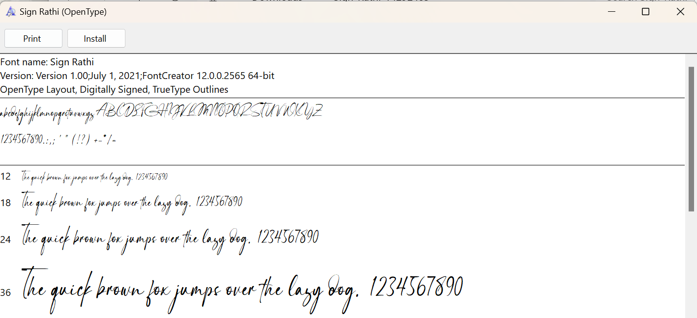 Step 2: Once unzipped, double click on the font file you wish to install. This will open a preview window displaying the font's characters. At the top you will see an install button.