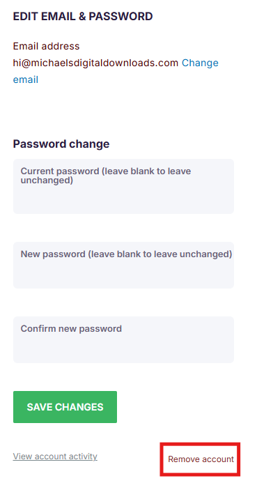 However, if you do decide to remove your account completely, you can do so in your account under Edit details & password.
